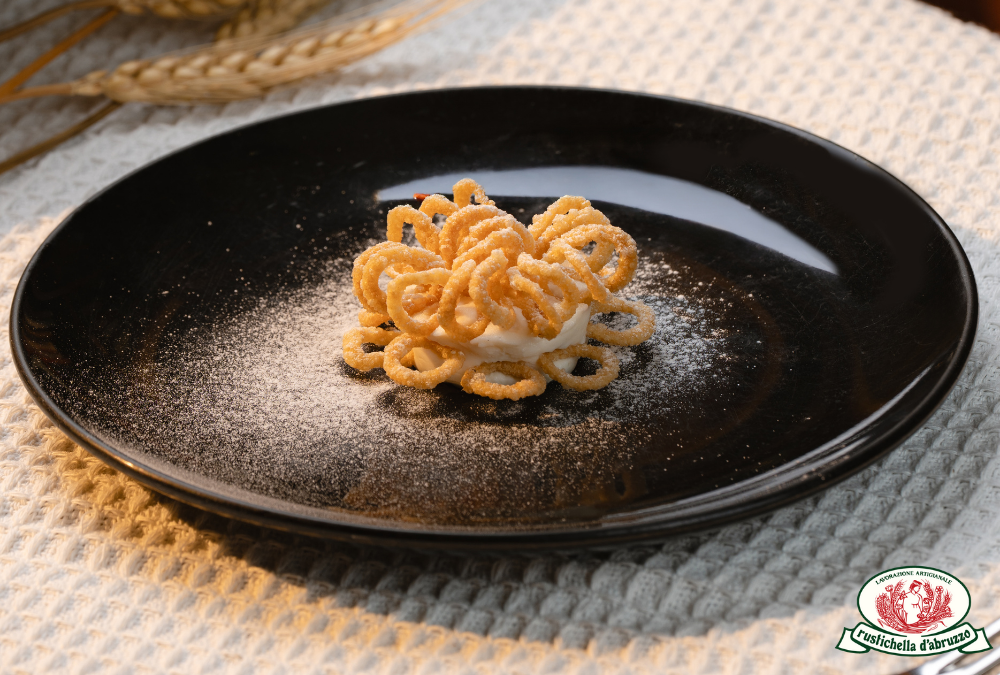 - 滿天星辰 (Anelletti Fritti con Ricotta): 傳統的戒指麵在西西里島地區常與肉醬、肉球、茄子或麵皮一同烘烤。嘉平主廚為了呈現羅仕克拉戒指麵的特色,首創將戒指麵泡水放冰箱還原成濕潤麵團,再油炸至酥脆,取代傳統西西里起司卷Cannoli外殼,象徵「愛情承諾」。這樣的創新做法在當地並不常見,是很值得嘗試的美味甜點。
