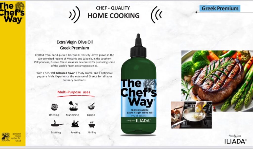 單一品種橄欖油,來自希臘南部Kalamata Taygetous山的克羅尼奇 (Koroneiki) 橄欖。摘採克羅尼奇品種未成熟綠色橄欖,並於24小時內冷萃壓榨,過程中溫度不超過攝氏27度;油酸酸度低於0.5%,遠低於國際標準的0.8%。油體清透明亮、帶點青草綠,聞起來有濃郁橄欖香味、清新青草芳香,入口能嚐到微微辛辣果味,細膩飽滿,回味悠長。無論是搭配沙拉、麵包沾醬、海鮮料理、地中海料理都非常適合。 油酸度:≤ 0.5%。發煙點:190°C~207°C。保存期限:18個月