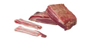 以新鮮豬五花塗抹鹽與各種香料調味、醃製,經長時間風乾熟成。