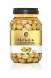 ILIADA採用來自希臘著名的卡拉馬塔市(Kalamata)的綠橄欖,地中海氣候充沛的陽光及肥沃土壤,經過人工採集及細心挑選,培育出一顆顆果肉飽滿的橄欖。 內容量3100公克(固形量1600公克)。保存期限:18個月。