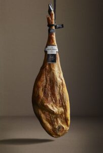 選用凱爾特白豬,在高山地區以地中海鹽巴鹽漬、風乾熟成24個月,偶爾帶有美味的白色酪胺酸結晶。帶骨。