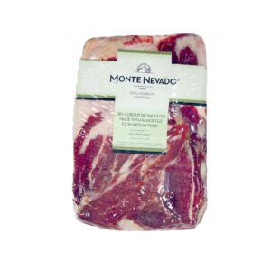 西班牙雪山牌100%圈養伊比利豬,肉質帶深紅色並富油質、充滿光澤,味道甜美帶核果香,並入口即化。前腿切片。