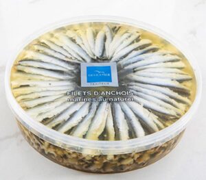 油浸鯷魚菲力生產的所有階段都是傳統工藝。將來鯷魚至於鹽和鹽水桶中脫水熟成,達熟成度後,浸於熱水中去除皮並手工取鯷魚菲力,將魚片排列裝罐後,最後加入植物油,封罐後,經系列的殺菌清潔貼標籤,即完成一罐美味的油浸鯷魚菲力。 加入油漬鯷魚菲力可以幫菜色提鮮,日常烹調應用性廣,冷食、熱食都很適合,直接取用或切(磨)碎成泥可搭配麵包、生菜、義大利麵(著名:煙花女義大利麵)、加熱煮醬汁與眾多料理都能輕易的搭配食用。 本產品使用祕魯的鯷魚原料製作與葵花油油漬。內容量50公克(固形量30公克)。鋁罐。