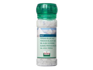 波斯藍鹽是世界上最稀有珍貴的岩鹽之一,採自伊朗的古老鹽礦。據說形成於前寒武紀時期,隨著海洋及湖泊的蒸發和時間的推演而形成的天然鹽礦。幾世紀以來都是以手工採收,而其如同藍寶石般晶瑩的藍色來自於豐富的鉀含量。然而古鹽礦的產量逐年減少,因此與產自海洋的其他鹽種不同,藍鹽是一種即將消失極為珍貴的鹽種,被譽為"藍色的黃金"。藍鹽入口風味特殊濃郁,但馬上會變得很溫和,後味微妙回甘。使菜餚變得更有特色,不論是搭配海鮮,或是味道濃郁的肉類或肥肝,藍鹽都能達到畫龍點睛的完美效果。另外藍鹽與甜品搭配更顯魅力,不論是焦糖或是巧克力都是絕配。