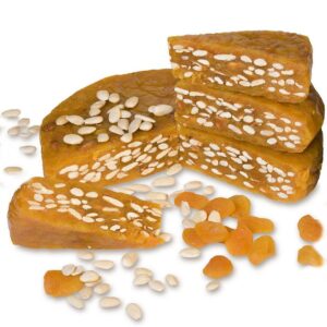 Bonvallis 朋菲麗果乾餅,來自西班牙馬德里,是傳統的地中海果乾點心,以當地特產的無花果、椰棗、杏桃等果乾,手工製成,甜味天然,並搭配杏仁、核桃等堅果,富含纖維與礦物質,高纖、無麩質。每一口,都可以嚐到地中海果物與堅果的濃郁美味!也很適合搭配各種風味的乳酪、鵝肝、肉醬一起享用,風味更佳。 精選突尼西亞Deglet Nour椰棗,以及美國加州核桃,加入巧克力,適合搭配咖啡或茶一起享用。 椰棗80%、核桃10%、巧克力10% ★注意:本產品可能含有果核,食用時請小心,3歲以下幼兒請勿食用。